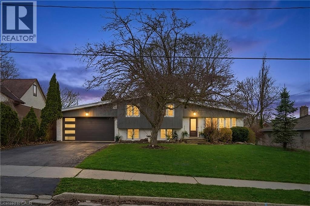 This beautifully updated four-level side split sits on nearly a quarter-acre in a highly desirable neighbourhood. The bright main floor features large windows, a living room with a gas fireplace, kitchen/dining room with a walkout to the backyard retreat. The Kitchen you’ll find granite countertops, a movable island, and built-in appliances, including a gas stove. Upstairs, the second level offers three spacious bedrooms with hardwood flooring and an updated bathroom featuring a walk-in glass shower. The lower level provides a versatile living space, with a gas fireplace, large windows, and a luxurious bathroom with a soaker tub, walk-in shower, heated floors, and a walk-in closet. The basement level adds even more living space with a recreation room featuring a third gas fireplace, along with a large laundry, utility, and storage area. Outdoors, enjoy a fully fenced, mature yard designed for relaxation and hosting. Highlights include a deck with a built-in canopy and adjustable sunshade slats, a hot tub, a wood-fired sauna, and an outdoor shower perfect for entertaining family and friends. The setting offers a rare blend of convenience and quiet, with a small-town charm. Walking distance to Downtown St. Jacobs shops, restaurants, walking trails and more! (id:59491)